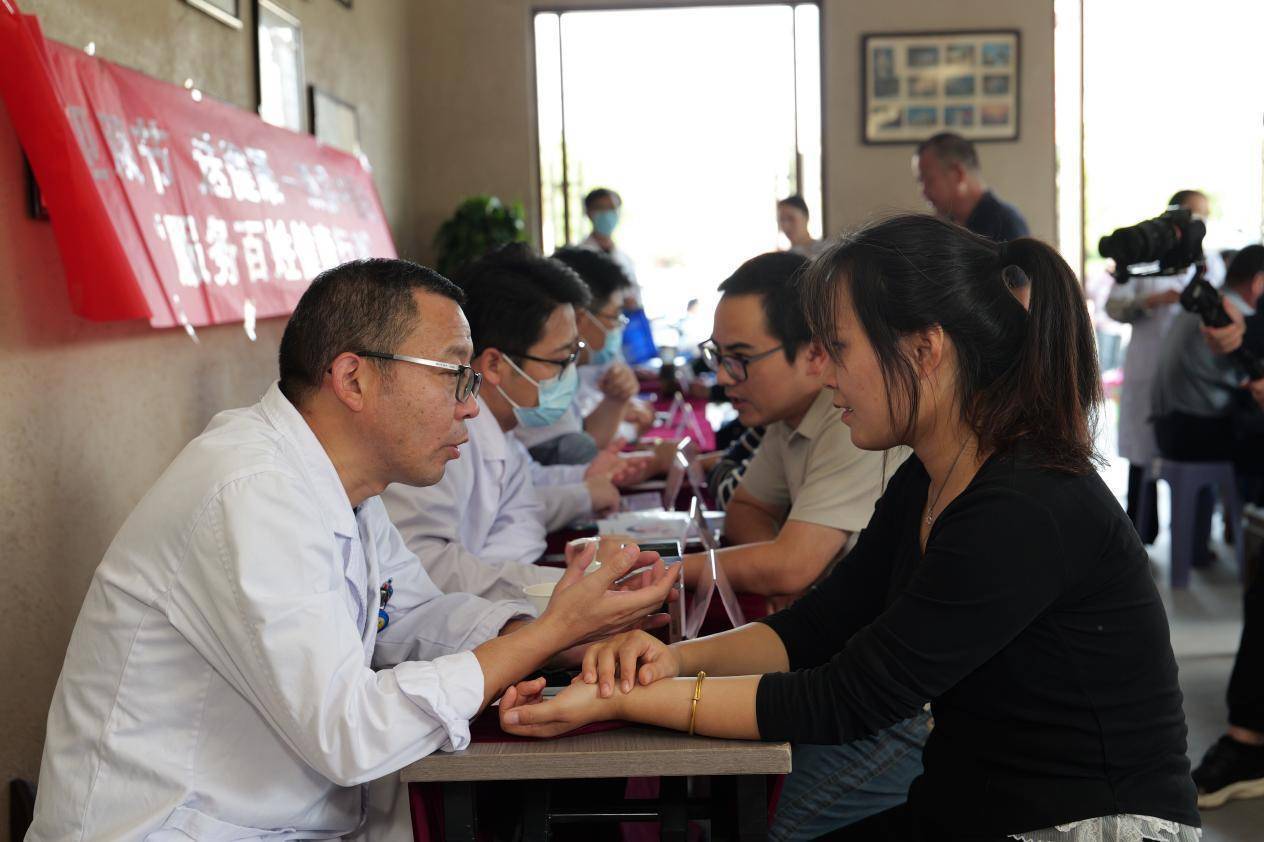 泗县中医院组织专家在百姓茶馆开展义诊活动。尤伟摄